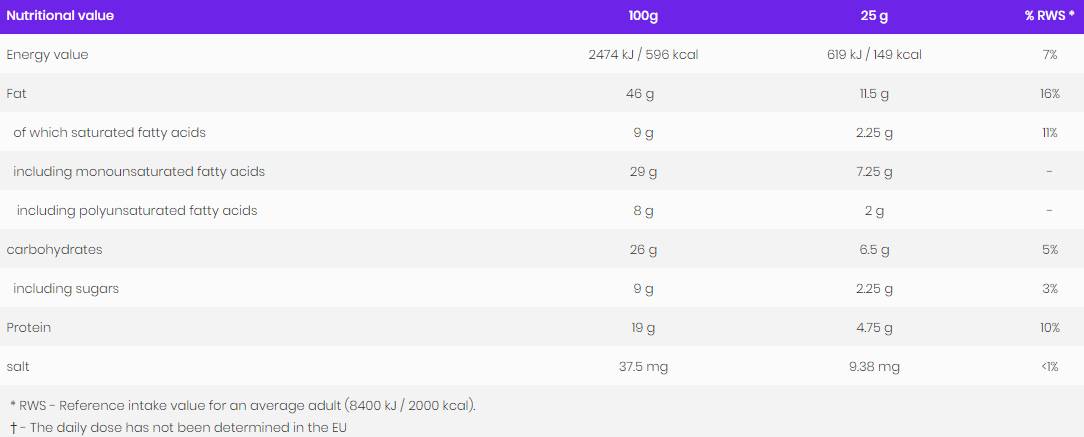 Avertismente: Evitat de persoanele cu alergii la nuci. Consultați un medic înainte de utilizare dacă aveți afecțiuni specifice de sănătate.