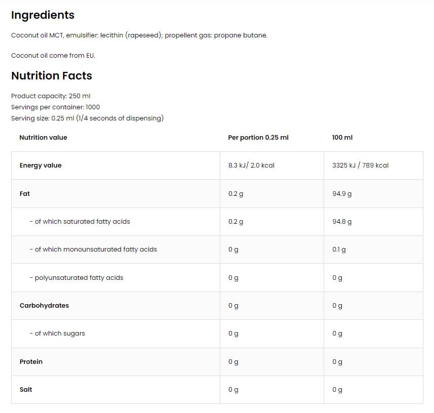 Spray de gatit / Cocos 250 ml