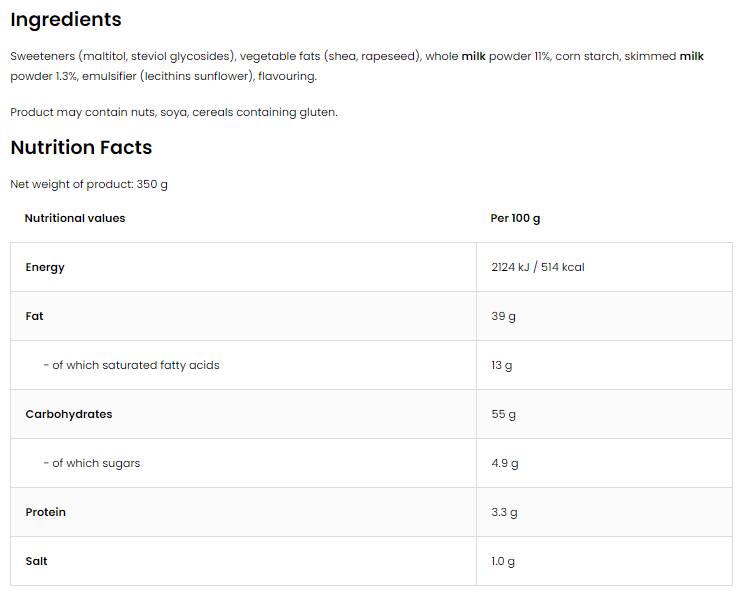 Creametto Protein Spread cu aromă de ciocolată albă este alegerea perfectă pentru oricine dorește să-și îmbunătățească alimentația și să mențină un stil de viață activ. Bogat în proteine ​​și grăsimi sănătoase, acest produs este excelent pentru susținerea creșterii musculare și a refacerii după activitatea fizică. În plus, îți satisface pofta de dulce fără a adăuga calorii inutile, făcându-l perfect pentru micul dejun sau desert.
