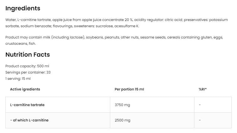 Avertismente: Nu este recomandat persoanelor sub 18 ani. Consultați un medic înainte de utilizare dacă aveți probleme de sănătate sau luați medicamente. Produsul nu este un substitut pentru o dietă variată.