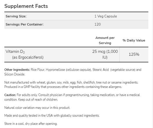 Vitamina D 1000 UI | Vegetarian Dry - 120 capsule