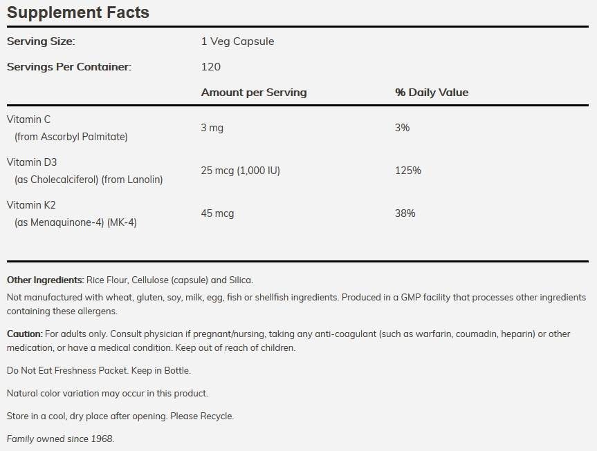 Cercetările științifice arată că vitamina D-3 este importantă pentru buna funcționare a sistemului imunitar, iar deficiența acesteia poate duce la diferite boli. Vitamina K-2 este legată de reducerea riscului de osteoporoză și de îmbunătățirea sănătății cardiovasculare. Potrivit studiilor, combinația dintre vitamina D-3 și K-2 poate duce la îmbunătățiri semnificative ale sănătății oaselor și ale bunăstării generale.