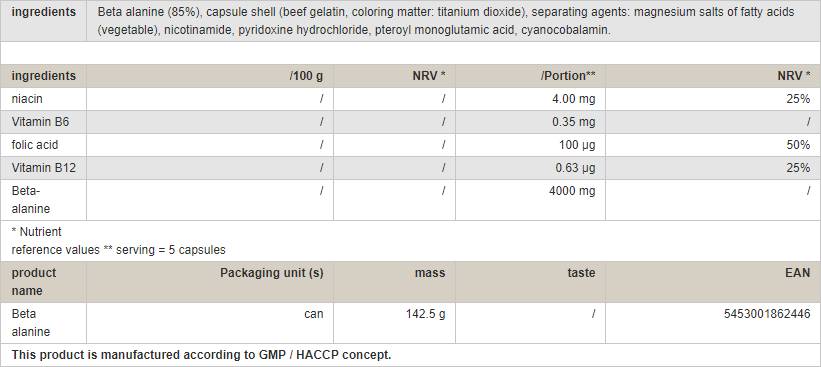 Beta Alanina ajută la umplerea optimă a rezervelor de carnozină din mușchi. Depozitele de carnozină bine umplute, la rândul lor, optimizează performanța anaerobă (rezistența musculară) prin limitarea saturației cu acizi a mușchilor (carnozina este un tampon de pH) și, conform ultimelor cercetări, activează enzimele ATPază miofibrilare, responsabile de intensitatea contracțiilor musculare. Pe lângă faptul că îmbunătățește semnificativ rezistența musculară după doar câteva zile, Beta Alanine are proprietăți antioxidante excelente, ajută la hidratarea țesuturilor (prin sinteza de oxid nitric) și este considerată un nutrient cu efecte anti-îmbătrânire versatile.
