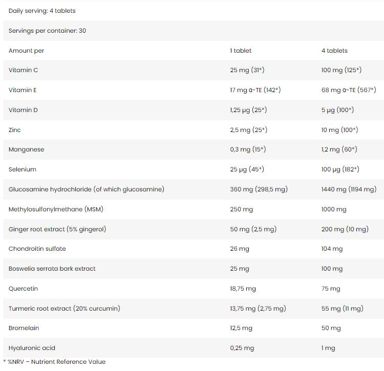 Această formulă combinată complexă oferă nu numai ingrediente cheie și dovedite pentru articulații și cartilaj, ci și unele dintre cele mai bune extracte naturale cu componente bioactive dovedite.