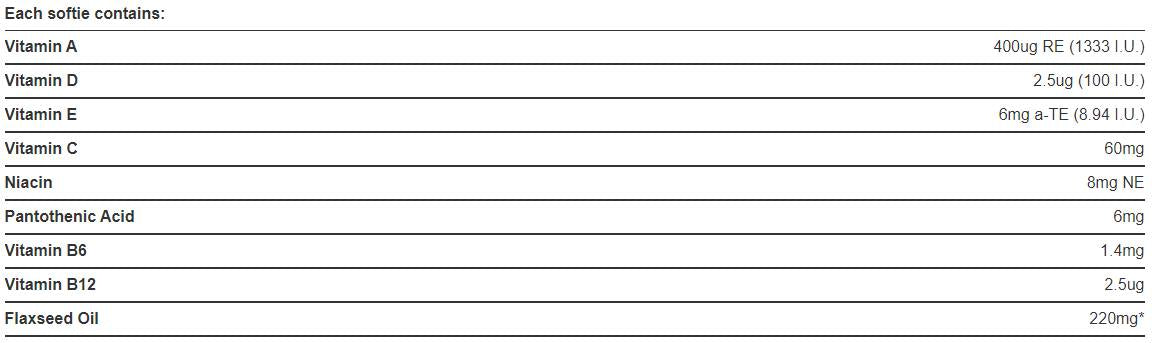 Acest supliment alimentar contine 12 vitamine și minerale, inclusiv învitaminele A, C, D, E, B1, B2, B6, B12 și acid foliccare pot ajuta la îmbunătățirea sănătății copiilor. De asemenea, acest supliment conține acizi grași omega-3, care sunt importanți pentru sănătatea creierului, vederea și sistemul cardiovascular.