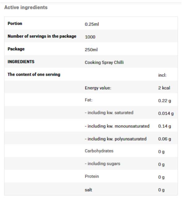 Spray de gatit - Ulei de ardei iute - 250 ml
