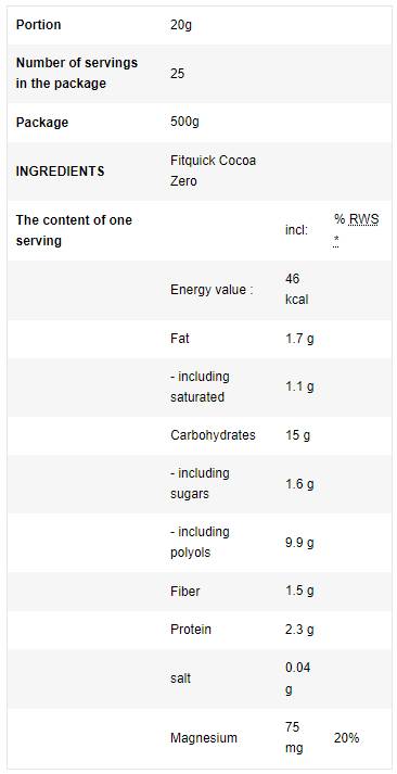 FitQuick Cocoa Zero | cu eritritol - 500 de grame