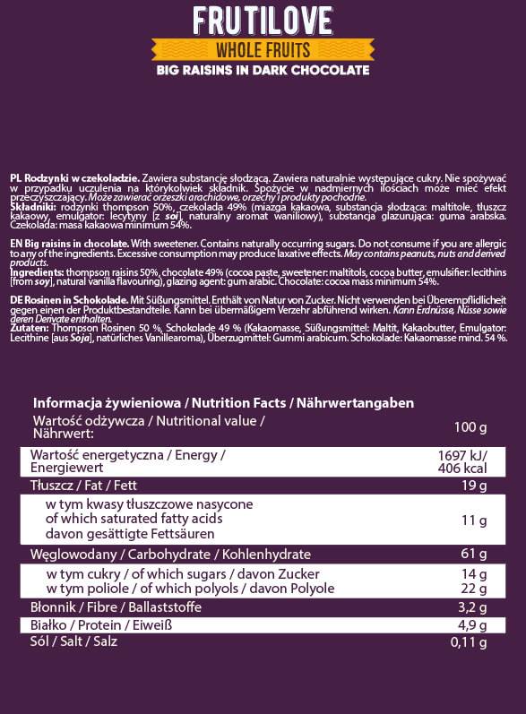 FrutiLove | Stafide mari in ciocolata neagra 30 grame