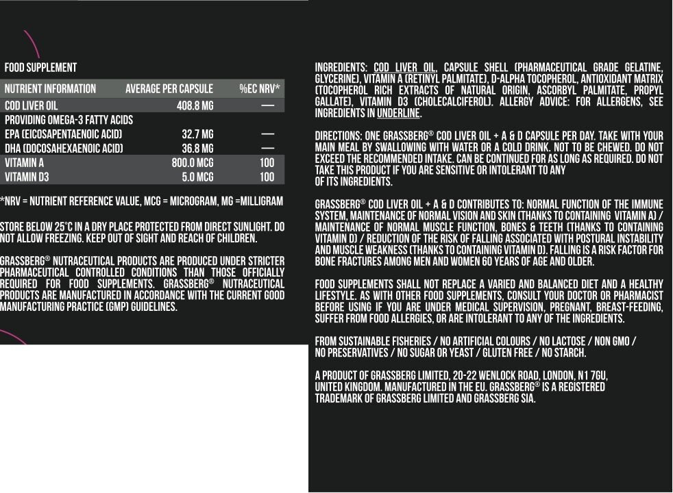 Grassberg Cod Liver Oil + A+D sau uleiul de ficat de cod este renumit ca sursa de vitamine si acizi grasi esentiali. După cum sugerează și numele, este derivat din ficatul de cod și este disponibil ca supliment lichid sau capsule.