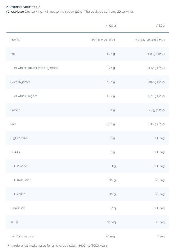 Conținut de proteine ​​90%*, fără lactoză, gluten și zahăr.