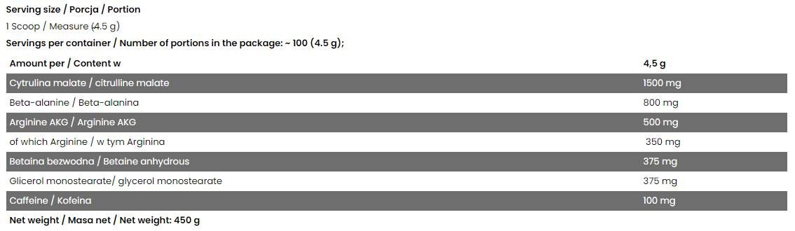 malat de citrulină este un precursor al argininei și este utilizat pentru creșterea oxidului nitric. De asemenea, crește pragul de „eșec” al mușchilor și menține și asigură mai mult timp pompare.