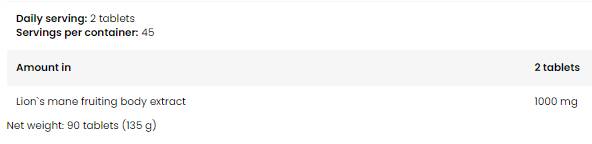 Ciuperca coama de leu 1000 - 90 tablete