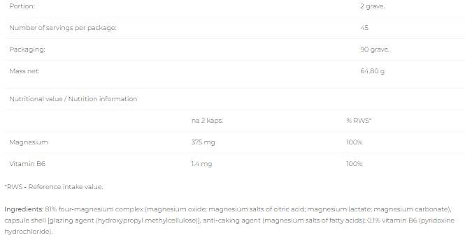 • Potrivit pentru persoane active: Magneziul este important pentru sinteza corectă a proteinelor, în special pentru persoanele active fizic.