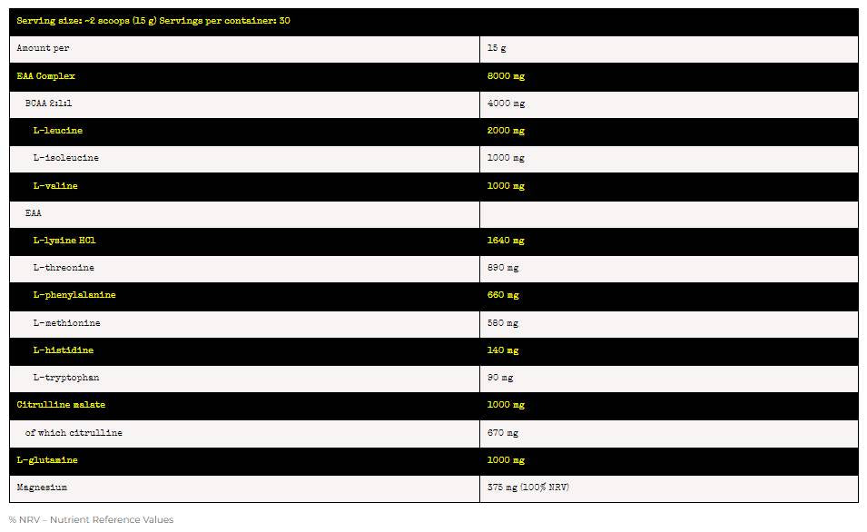 Impact nuclear | Formula completă de aminoacizi - BCAA, EAA, glutamina, citrulină - 450 grame