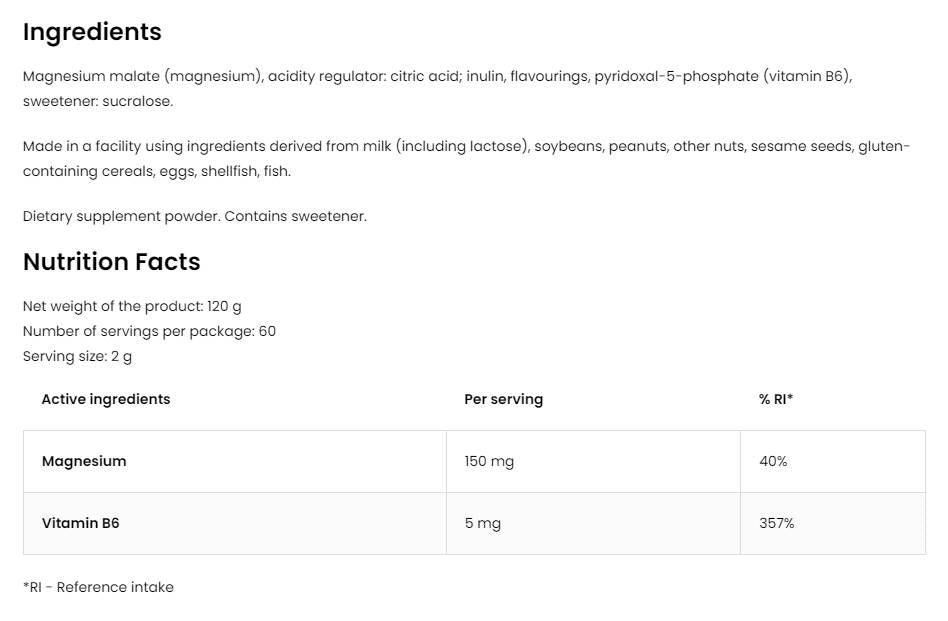 Pulbere de malat de magneziu 150 mg - 120 grame