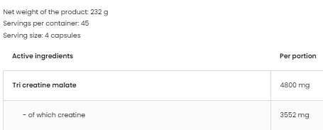 OstroVit Tri Creatina Malat / TCM 1250 mg este un supliment alimentar de înaltă calitate care este o sursă de malat de creatină. Aceasta este o combinație de creatina şi acid malic într-un raport de 1:3.