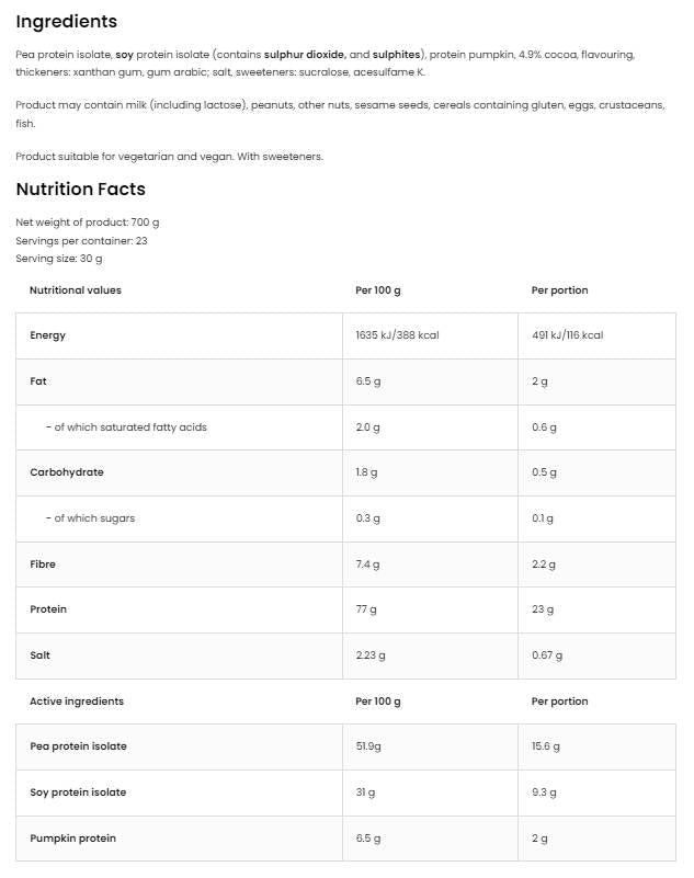 Nu uita să te uiți a doua fotografie a produsului pentru gama completă din amestecul de proteine ​​vegane!