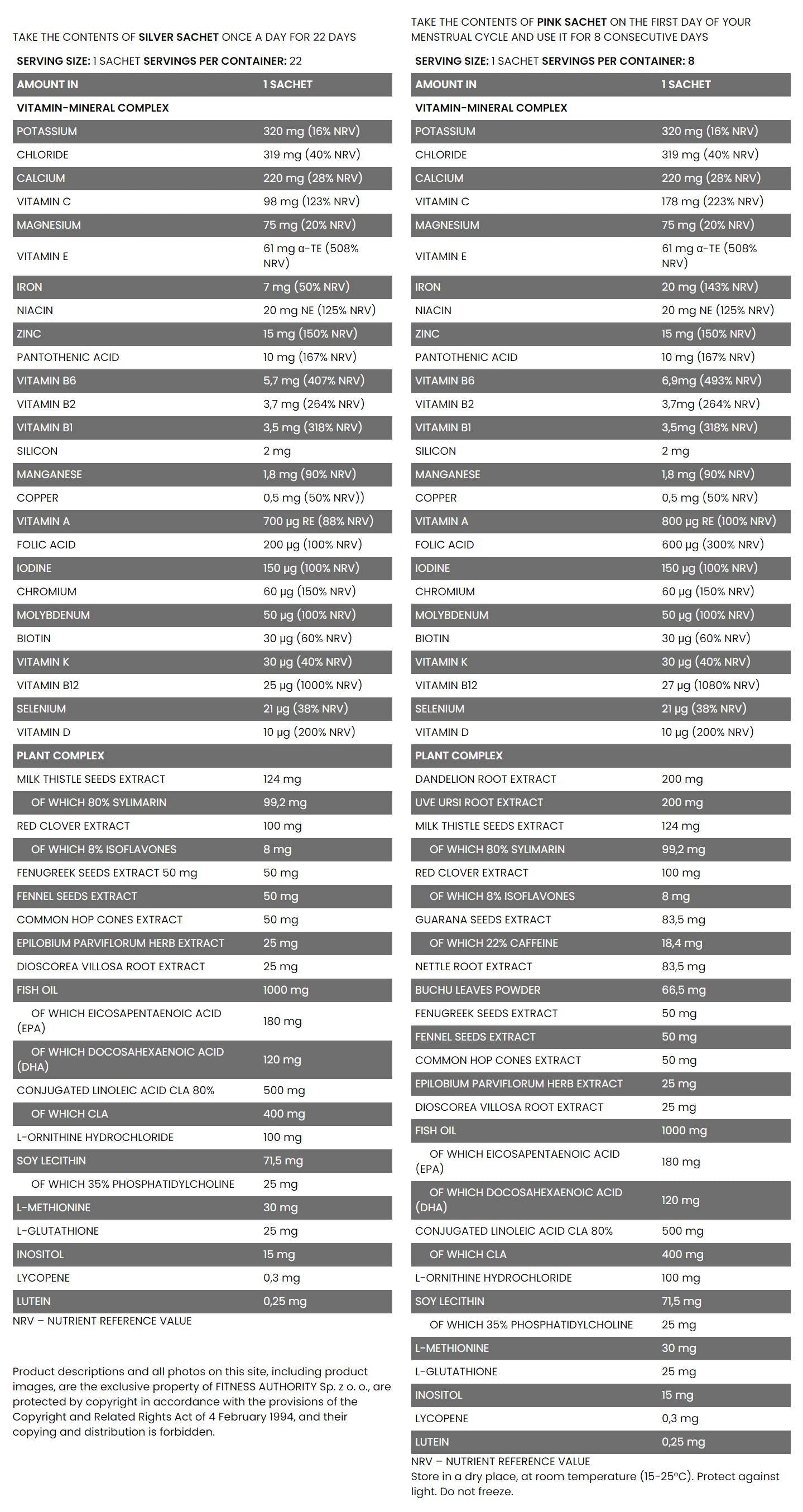 Pachet de fitness pentru femei | Formula completă de multivitamine pentru zilele ciclului menstrual - 22 + 8 pachete