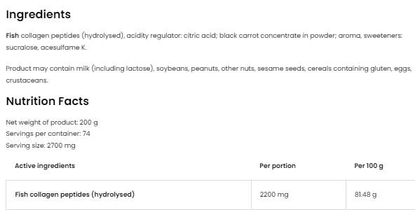 Avertismente: Produsul este contraindicat persoanelor cu alergii la fructe de mare. Consultați un medic înainte de utilizare dacă aveți probleme de sănătate sau luați medicamente.