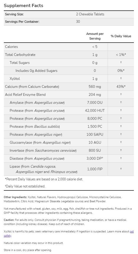 Ameliorarea acidului cu enzime - 60 de tablete masticabile