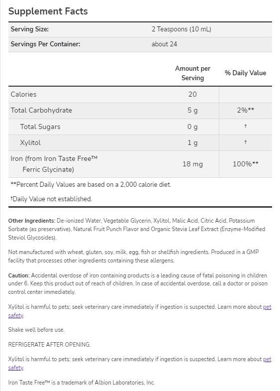 Fier în formă lichidă | Glicinat feric Tasteless Iron™ 237 ml