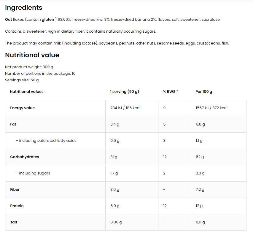 Făina de ovăz Oat My Day este un produs extrem de nutritiv, bogat în fibre și nutrienți benefici, care oferă numeroase beneficii pentru sănătate. Consumul de fulgi de ovăz poate ajuta digestia, datorită conținutului ridicat de fibre solubile, care ajută la reglarea tractului gastrointestinal. În plus, vă poate crește nivelul de energie, ceea ce este benefic în special pentru un stil de viață activ.