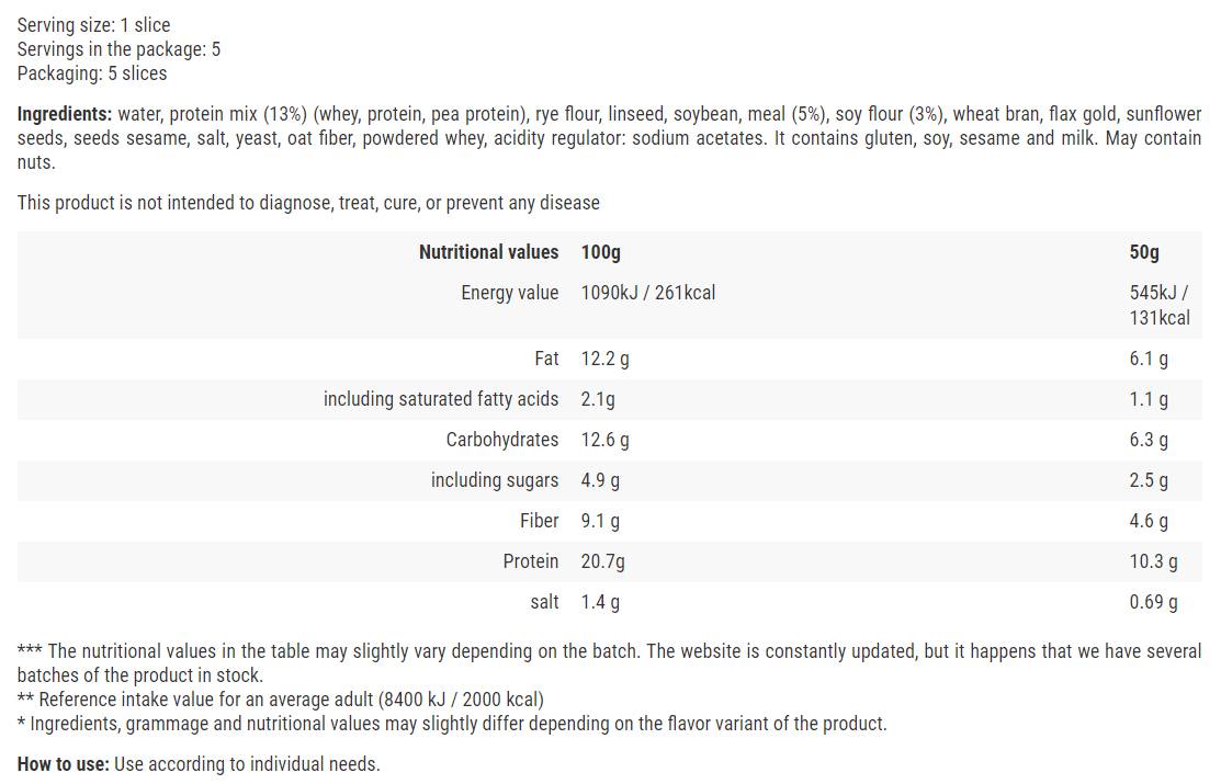 Pâinea cu proteine ​​de la Cheat Meal este o inovație în lumea alimentației sănătoase. Cu conținutul său ridicat de proteine ​​și conținut scăzut de carbohidrați, este ideal pentru persoanele care urmăresc dieta și doresc să obțină rezultatele dorite fără a compromite gustul. Ingredientele, inclusiv făina integrală de grâu și tărâțele de soia, oferă nu numai proteine, ci și fibre, care susțin o bună digestie.