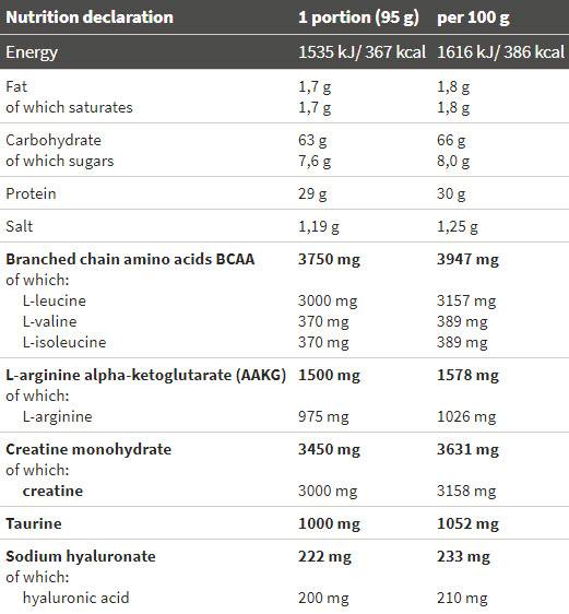 Datorită ingredientelor incluse, metaboliții dăunători sunt reglați și radicalii liberi rezultați în urma antrenamentului intens sunt eliminați. Greutățile mari vă distrug articulațiile și ligamentele, motiv pentru care colagen, glucozamină și acid hialuronic, care sunt atât de importante pentru construcția lor, au fost adăugate produsului.