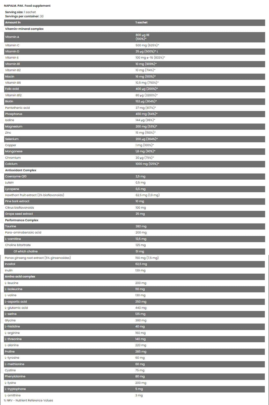 Xtreme Napalm Pak | Formula completă cu vitamine, minerale și antioxidante - 30 pachete